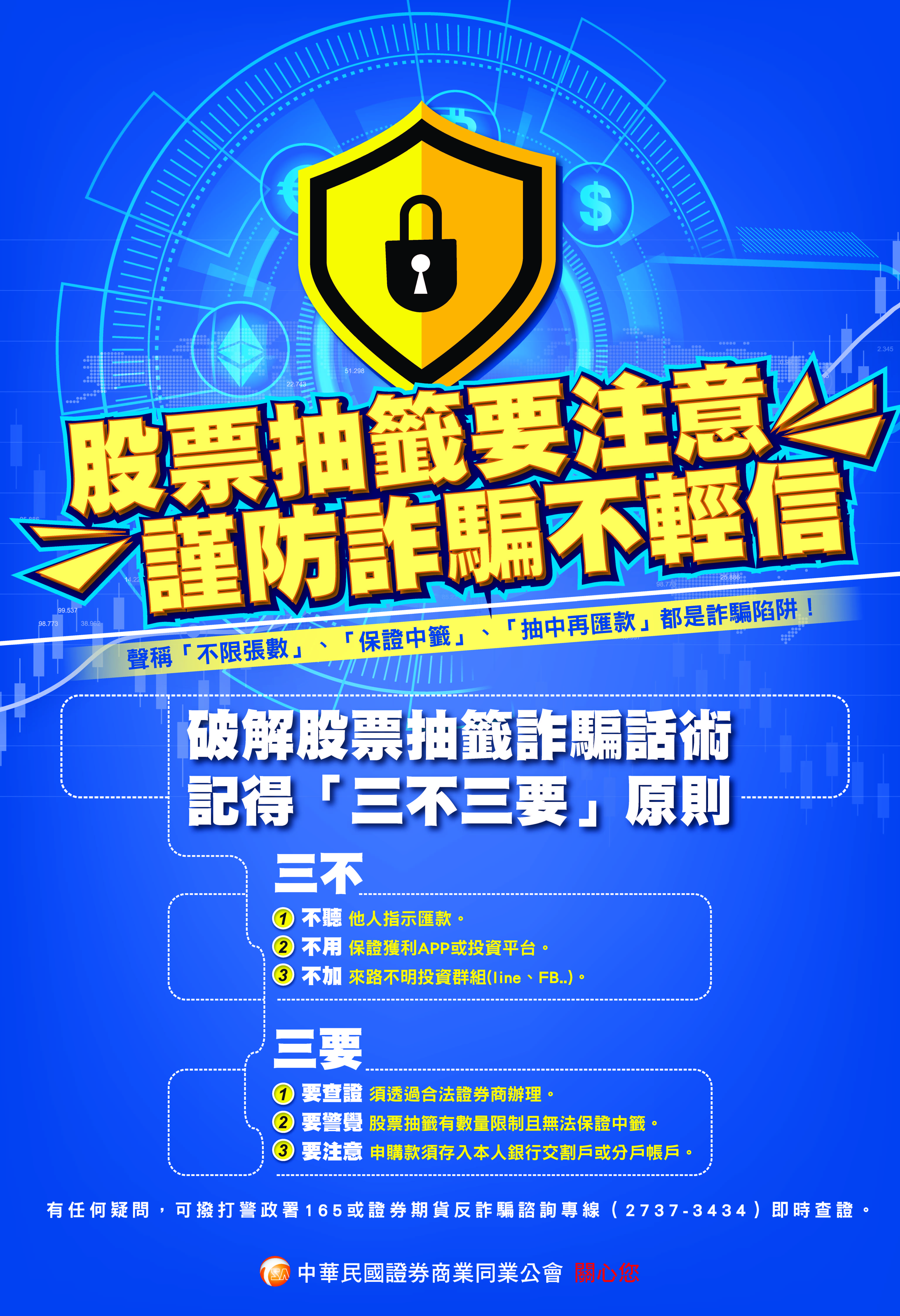 2024/11/28「股票抽籤要注意 謹防詐騙不輕信」切記三不三要原則!